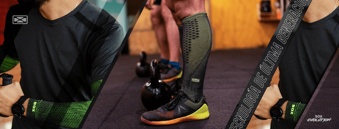 Medias tecnológicas de compresión graduada para entrenamiento, descanso y recuperación.